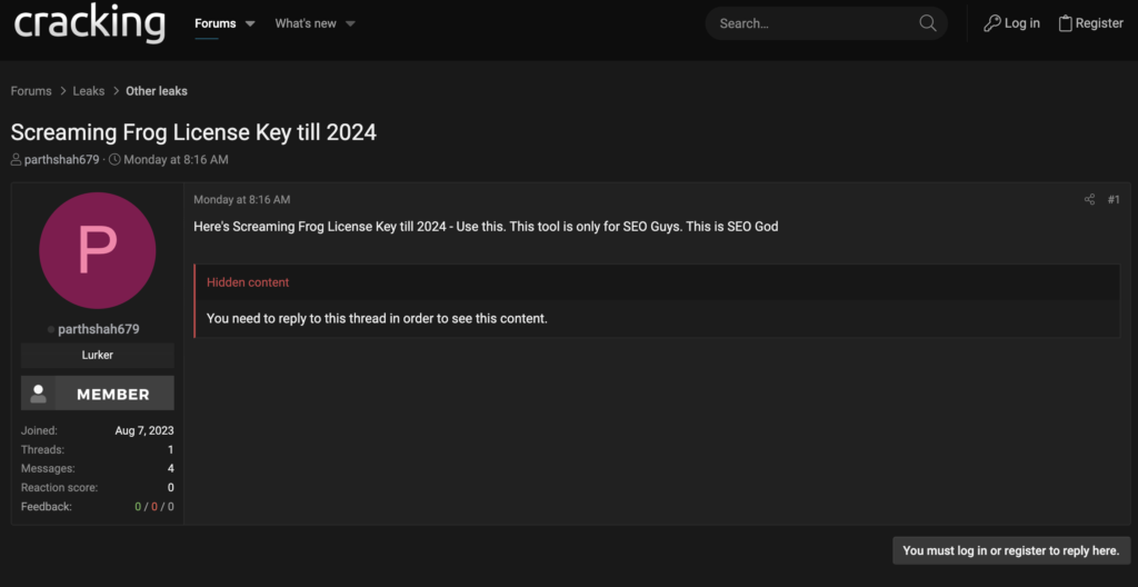 The sharing of software of tools we love like ahrefs and Screamingfrog takes password sharing into murkier territory. Websites like Techmazza offer guides on how to get Ahrefs premium accounts for free, providing step-by-step instructions to bypass payment. We have tested several of these and ran into working licenses for tools we use daily, such as Screaming Frog.